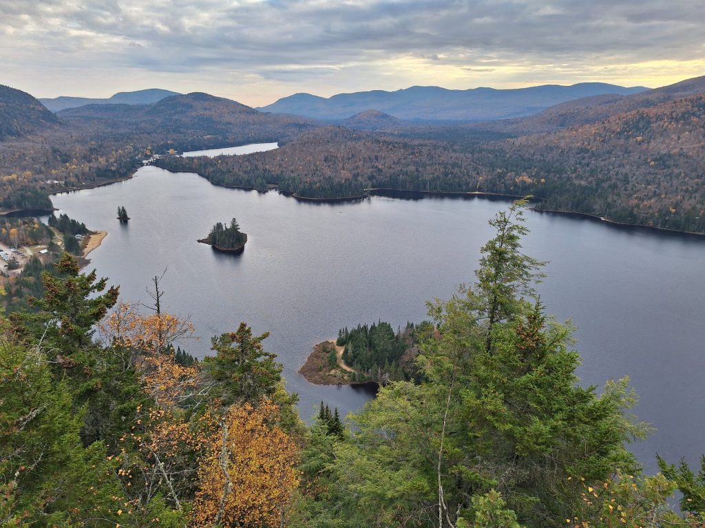 Ensuite, nous prenons la route pour rejoindre le parc national du Mont-Tremblant (environ 45 minutes). Sur place, nous faisons plusieurs mini randonnées. L'une d'elle nous mène jusqu'à la chute du Diable, un petit sentier facile d’accès qui nous offre une belle vue sur la cascade. Puis, nous continuons avec le sentier de la Roche, une marche plus soutenue d’environ 2h aller-retour, mais tout à fait réalisable avec des enfants, À l’arrivée, la vue sur le lac Monroe depuis le belvédère est à couper le souffle.